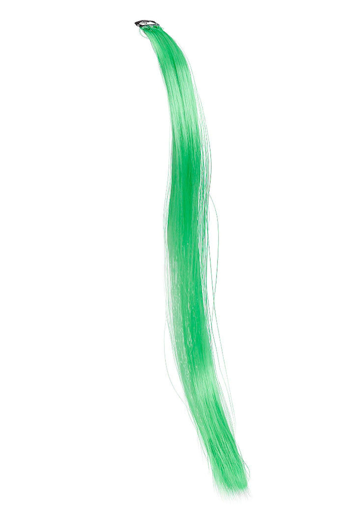 This Green Hair Tinsel is an easy way to give your look that extra punch of color! Features 1 inch wide synthetic fibers fastened to a small comb for easy application and removal. Mix and match with our colors to create a multi-color look!