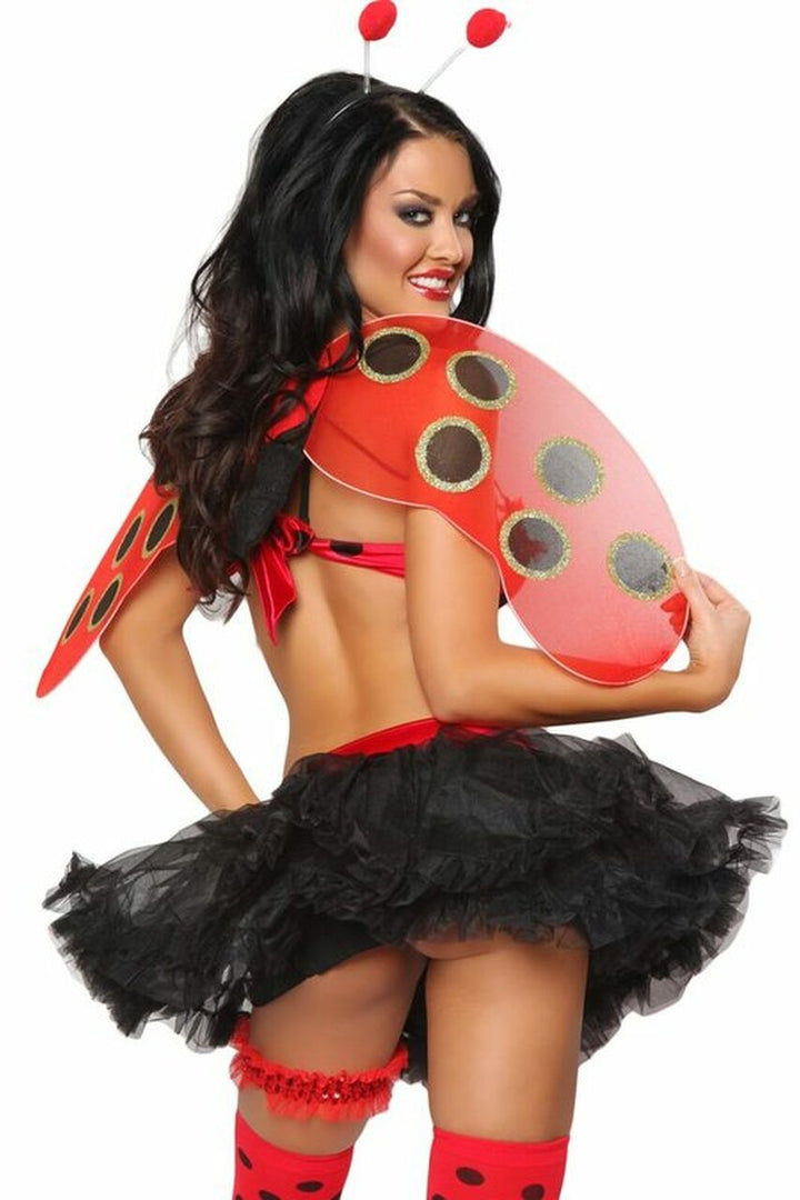 There's a difference in a ladybug and an adult ladybug… when you get this costume you will see exactly what it is! This costume is sexy, sleek and definitely can't be beat! You will be amazed by how many people you draw to you when you're wearing this costume! The Adult Sexy Ladybug outfit is a six piece costume which includes: a headpiece, a great bra top that is made of sequined mesh and has a underwire, wings, a petticoat skirt, a garter and polka dot stockings!