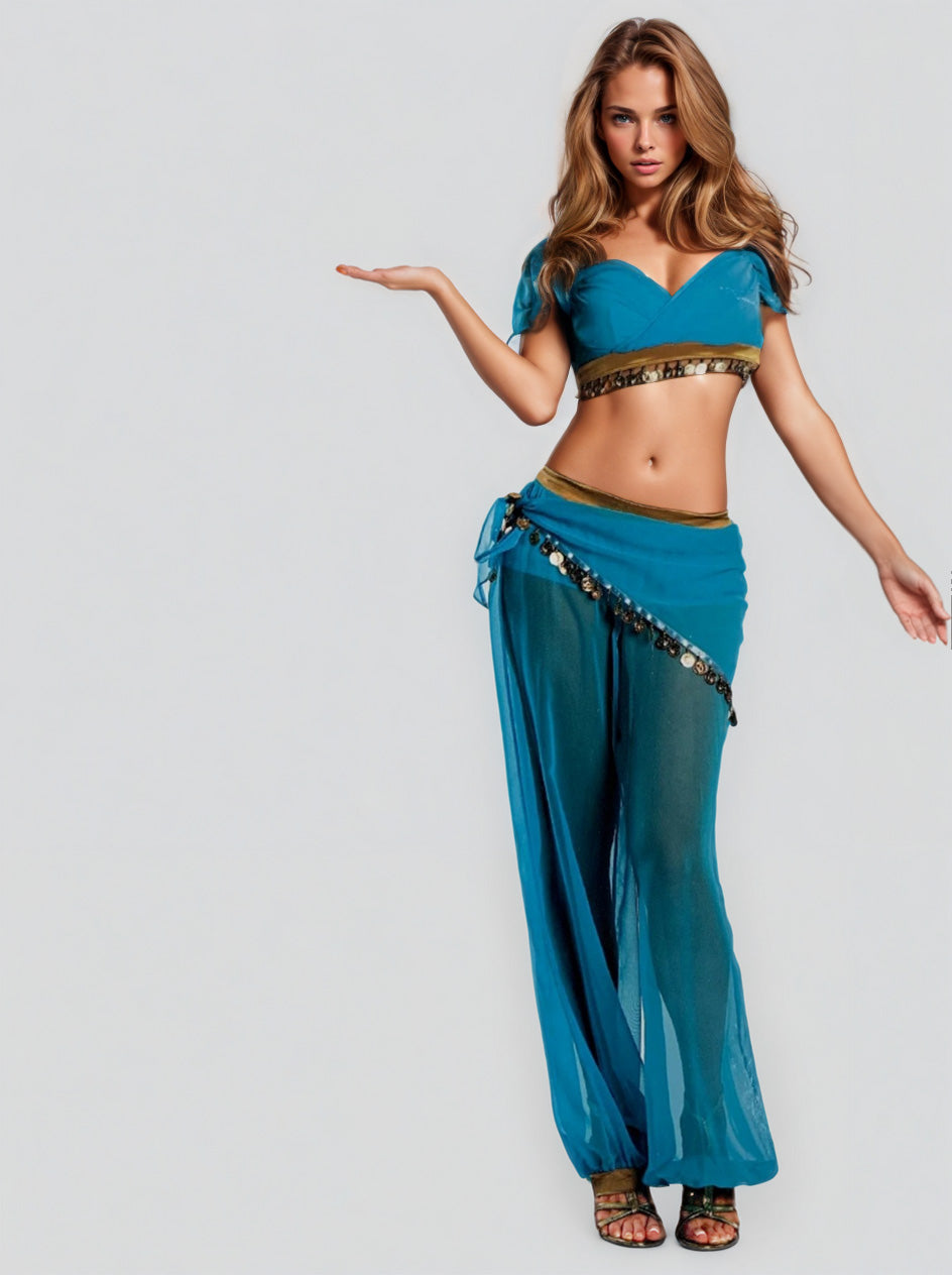 Unleash your inner genie with this Arabian Nights costume! Includes a top, pants, and waist sash for a complete look. (No lamp rubbing necessary.)