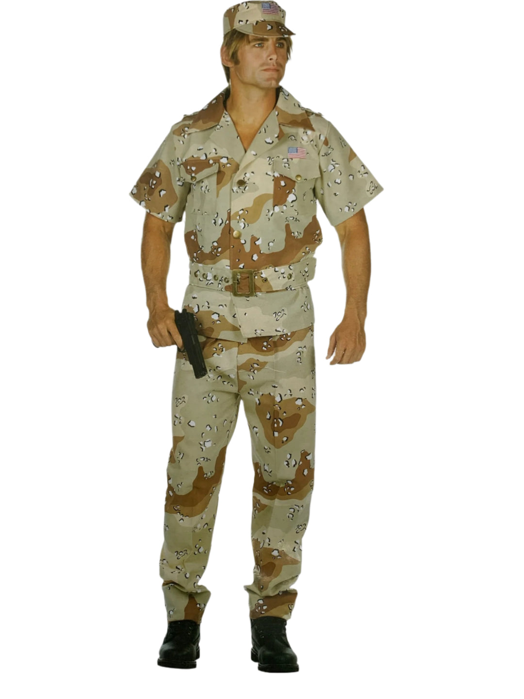 Get ready for action with this Army Desert Camo Costume! Featuring a shirt, pants, hat, and belt, it’s perfect for playful adventures and dress-up fun. The classic camouflage design helps you blend in while standing out in style. Whether for parties or imaginative play, this set has everything you need to march into excitement. (Gun not included.)