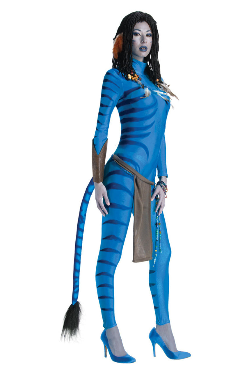 Unleash your inner Na'vi with the Avatar Neytiri jumpsuit! This fierce outfit comes complete with a tail, apron, and gauntlet - perfect for exploring Pandora or just lounging around the house. Embrace your wild side and stand out from the crowds with this unique costume. (Pandora not included.)