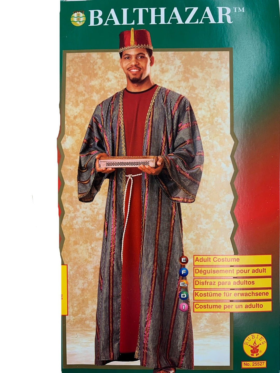 Feel like royalty with Balthazar, featuring a glamorous robe, stylish beltcord, and a majestic crown. Elevate your fashion game with these regal accessories, perfect for any occasion. Embrace your inner king or queen and stand out in the crowd with Balthazar. Long live the fashion monarchy!