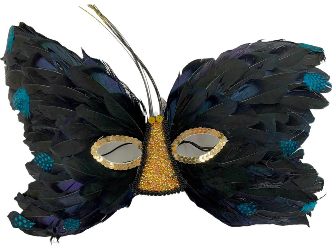 Feathered, fancy, and light as a feather! This black and gold mask adds the perfect touch of elegance to any costume. Perfect for masquerades, Halloween, or any festive occasion. Let your wild side fly free with this feathered mask.
