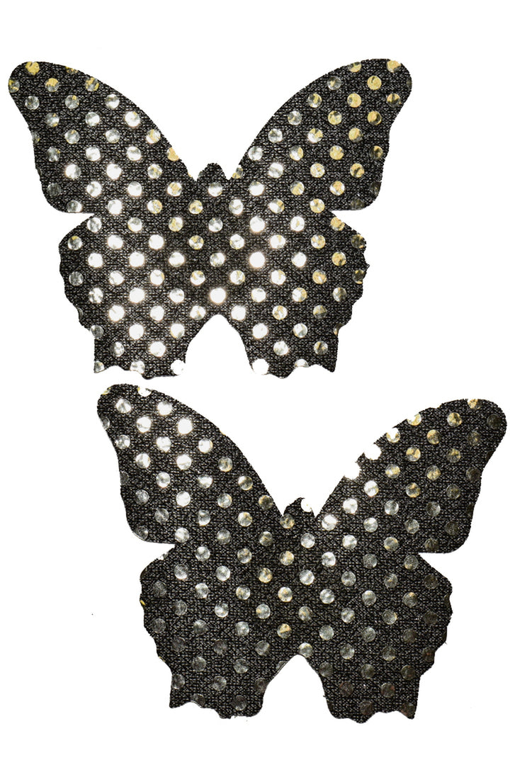 Black Sequin Butterfly nipple pasties. Features self adhesive tape, just peel and stick on clean, dry, oil-free skin!