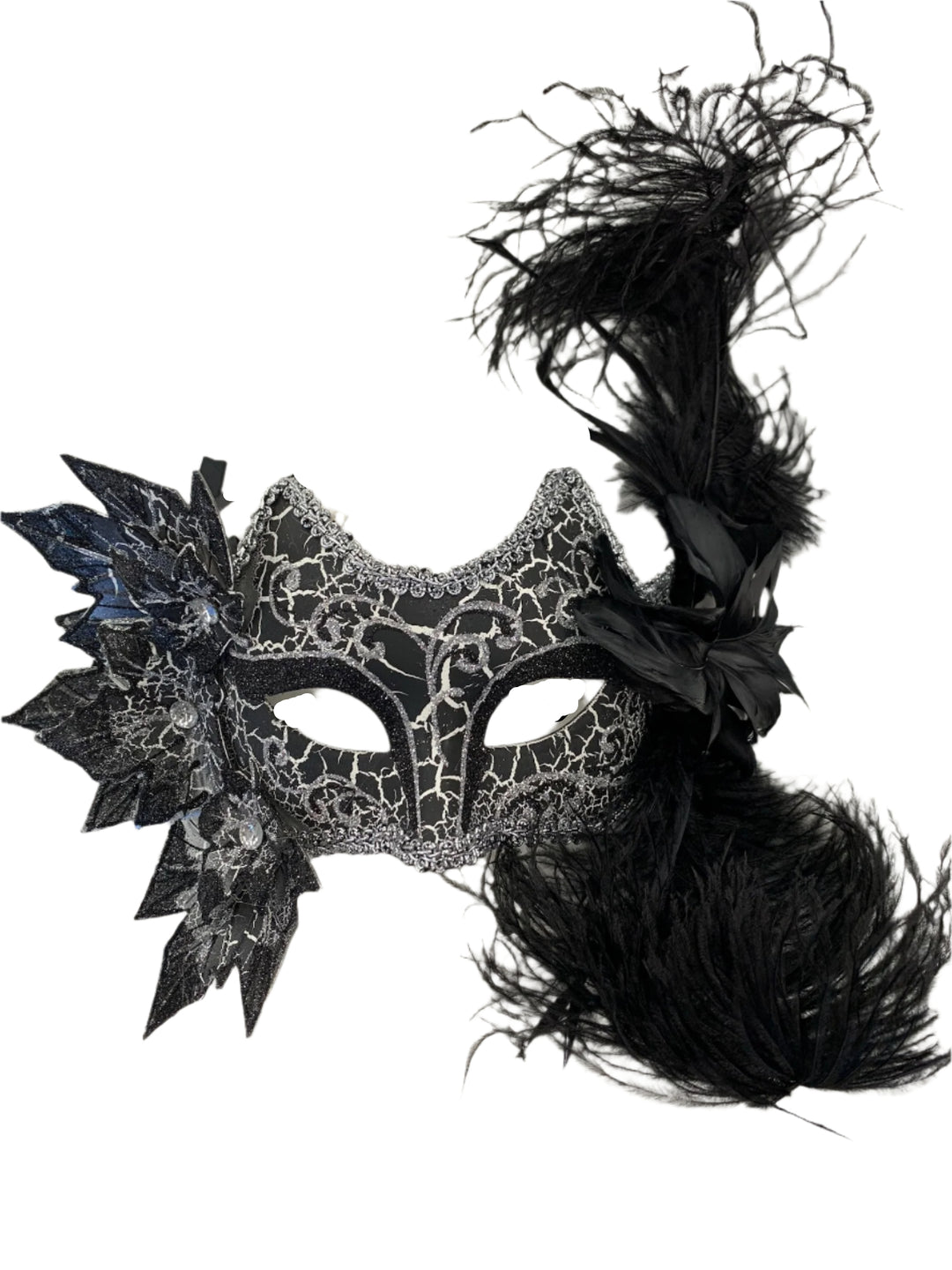 Add a touch of mystery and flair with this Black/Silver Mask adorned with elegant black feathers. Perfect for parties or masquerade balls, it combines sleek silver accents with playful feather details to make you stand out. Lightweight and comfortable, it’s your go-to accessory for a night full of fun and intrigue.