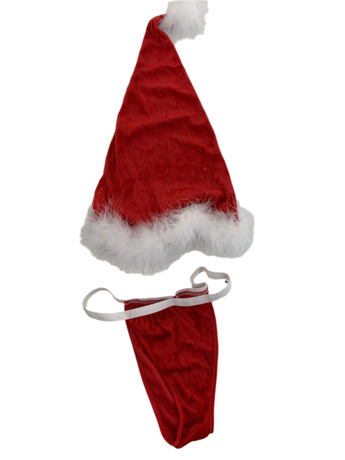 Get festive with our Christmas Set! This quirky set includes a short skirt, thong and hat, perfect for bringing some holiday cheer to your wardrobe. Feeling playful, this set is sure to add some fun to your look.