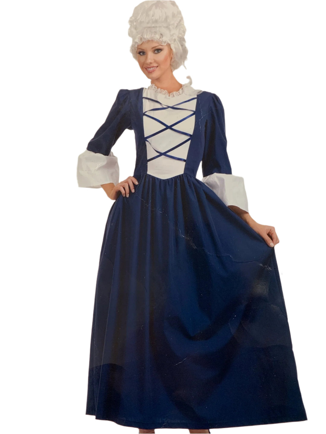 Step back in time with the Colonial Lady dress! This full-length dress features a unique lattice front design, perfect for any vintage lover. (Wig not included). Channel your inner history buff with this fun and timeless costume.