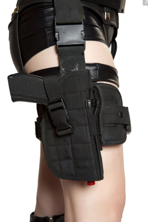 This Combat Warrior costume includes a camo print jumpsuit with long sleeves, bullet belt, and headscarf.