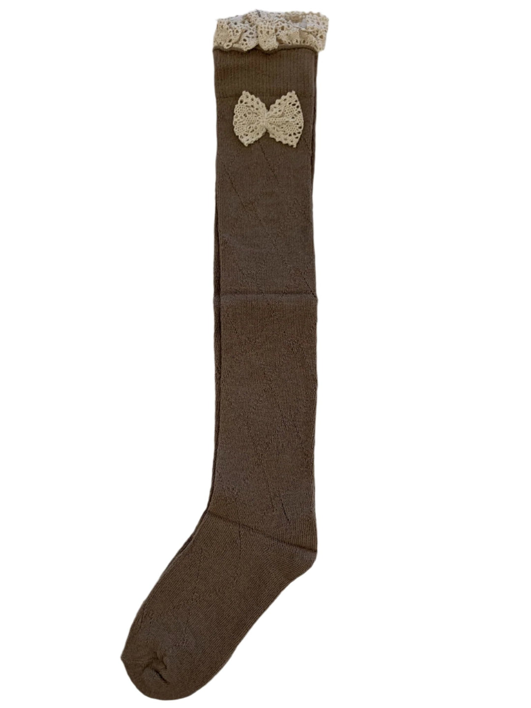 Step up your sock game with these knee socks featuring a cute lace bow and trim at the top. Perfect for adding a touch of playful style to any outfit. Keep it fun, flirty, and comfy with these quirky and stylish socks.