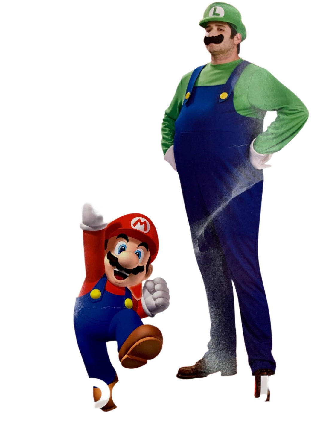 Get ready to jump into action with Luigi's iconic jumpsuit, complete with belly, hat, gloves, and mustache! Perfect for channeling your inner Super Mario and taking on any adventure with a playful and quirky attitude. (It's-a me, Luigi!)