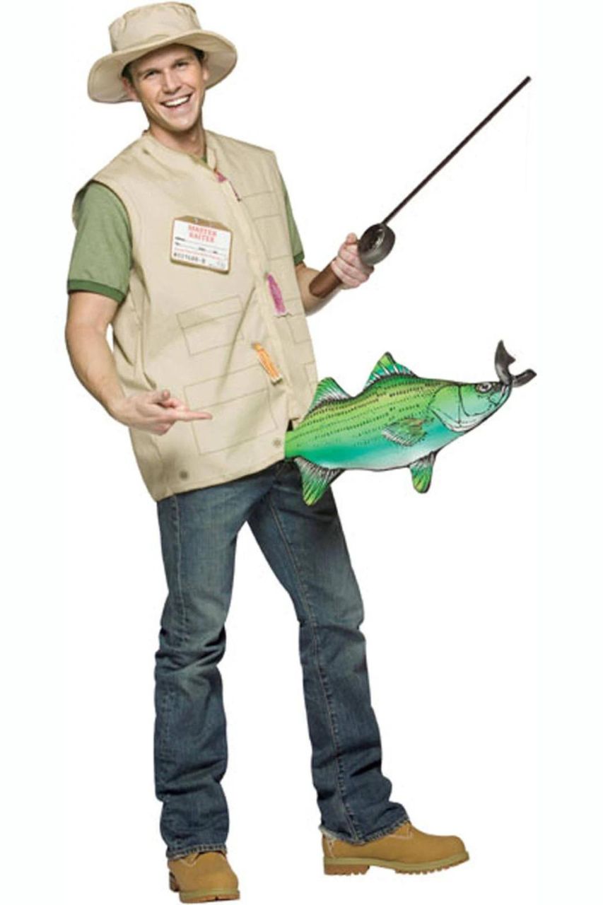 This Men's Catch Of The Day Costume comes with a vest featuring a fishing license, a trendy hat, a rod, and a fish. It's one size fits most for standard adult sizes.