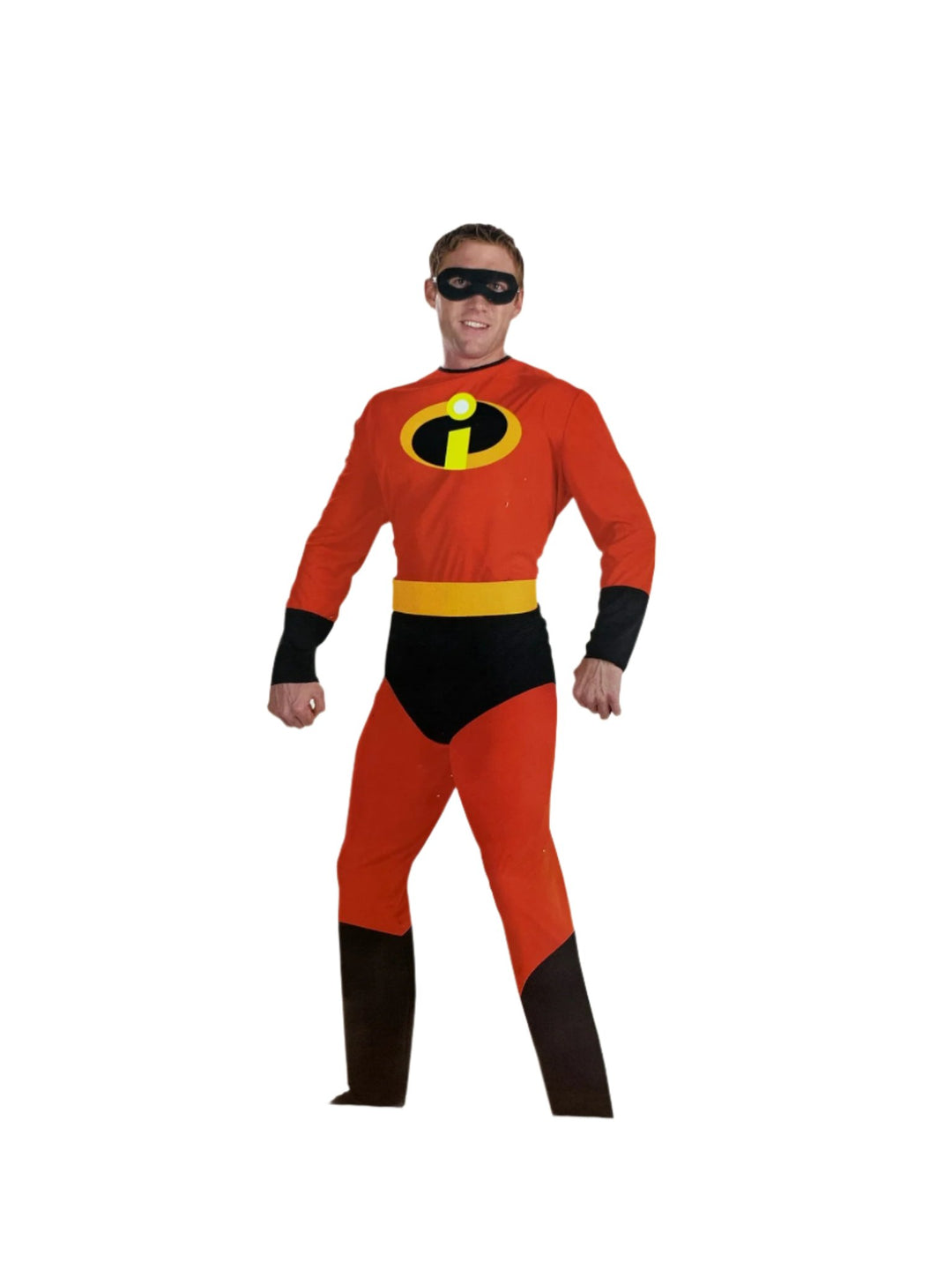 Unleash your inner superhero with Mr Incredible's jumpsuit and eye mask. Get ready to save the day in style and hide your true identity with this costume. Don't just be incredible, be Mr Incredible! ๐