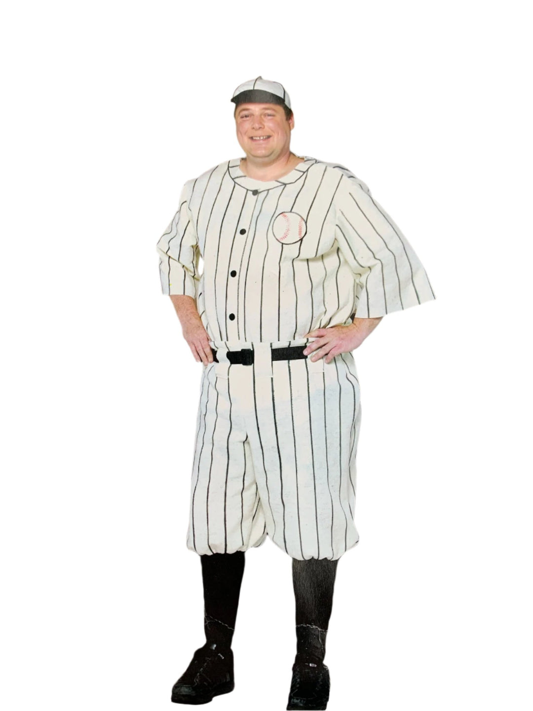Step up to the plate with this vintage-inspired baseball player costume! Includes a shirt, cap, pants, and belt for a complete look. Perfect for nostalgic fans or anyone looking to score a home run at their next costume party. Batter up!