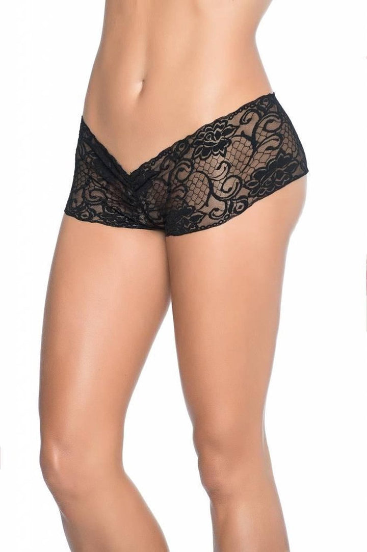 These plus size, swirl patterned lace boyshorts feature a cheeky cut back.