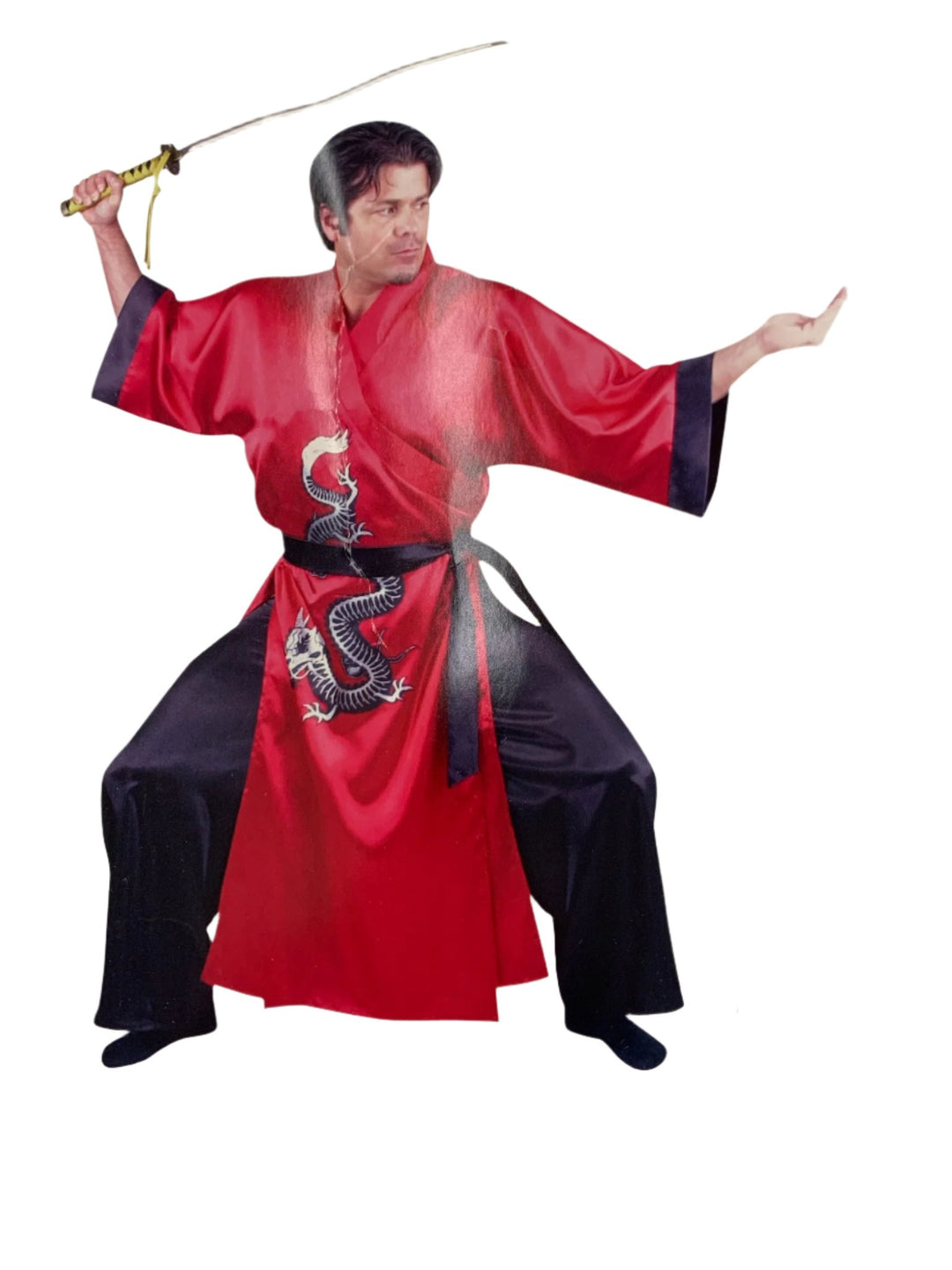 Transform into a powerful Samurai-Dragon Master with this satin robe featuring a fierce dragon print on the front and back. Complete with a matching belt and pants (sword not included). Unleash your inner warrior and conquer the day!