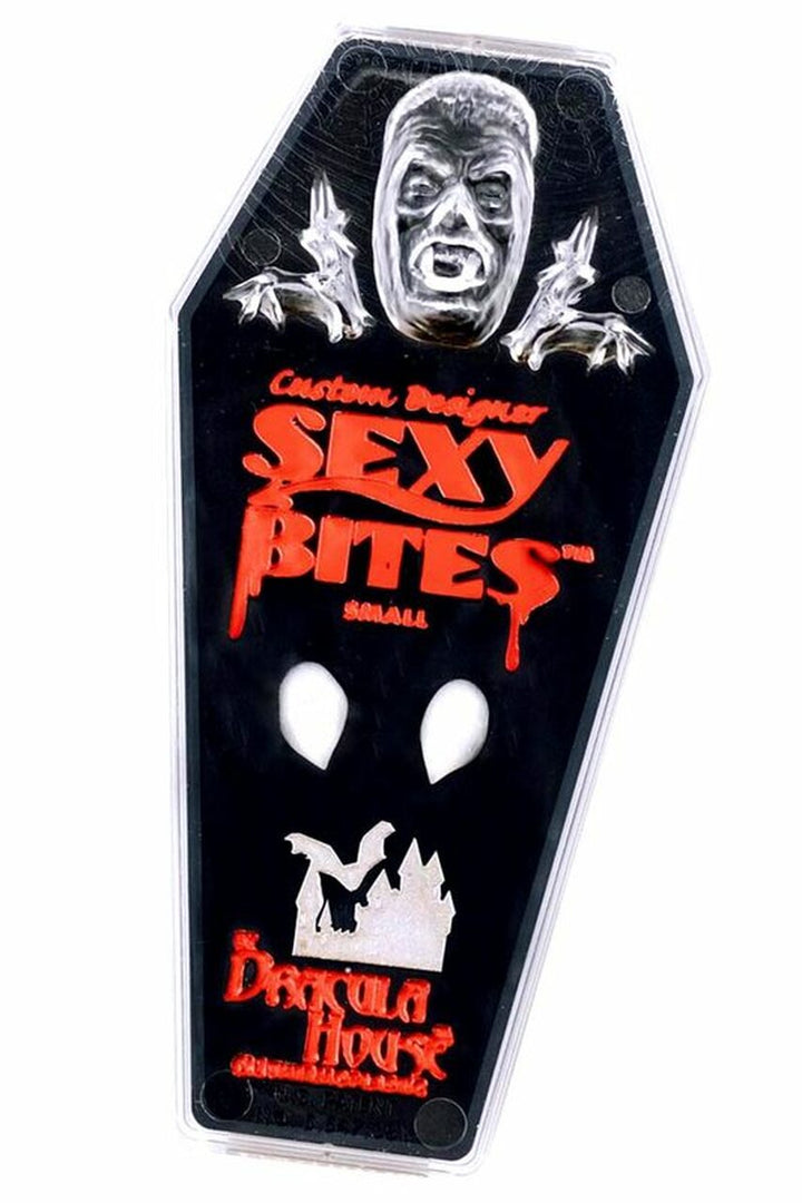 I vahnt...to suck...your blood! The Sexy Bites Vampire Teeth are the necessary accessory to create your vampy vampire look for Halloween, theme parties or just because you love all things vampire. These vampire fangs are placed over your teeth, are comfortable and have a strong anchor with no toxic chemicals. You can speak easily without them falling out! Sexy Bites Vampire Teeth are reusable. Not returnable.