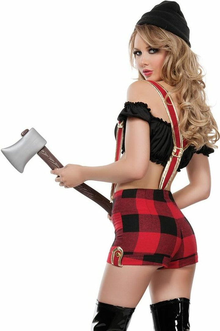 While wearing this sexy Lumberjack Costume, the other lumberjacks will be wanting to "jack" with you to see how big of a tree you can handle. You will surely deceive the machismo men surrounding you into thinking you can't handle the "long" haul. They will be surprised when you begin to tackle the wood, how determined, aggressive and enduring you are. You will be chopping down many a forest in this lumberjack costume after you prove yourself worthy and capable of conquering the hardest of hardwood.