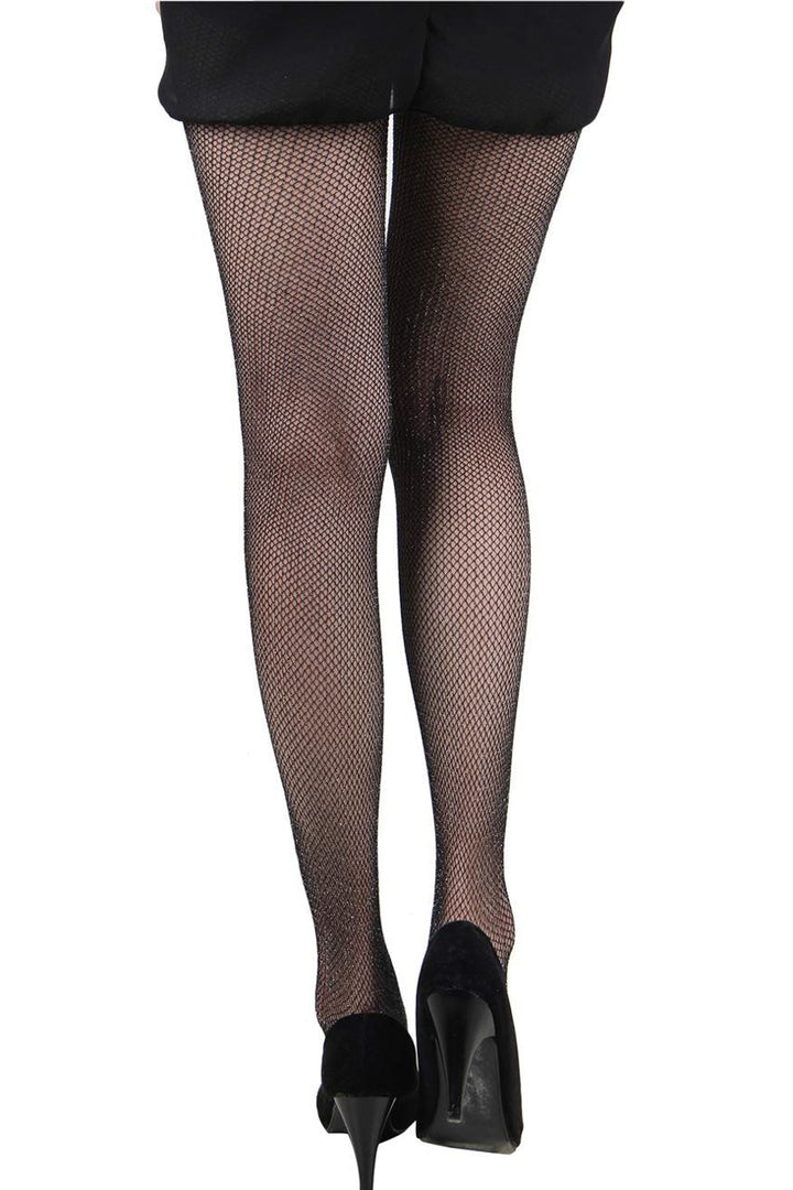 These black fishnet pantyhose feature an all over sparkle detail.