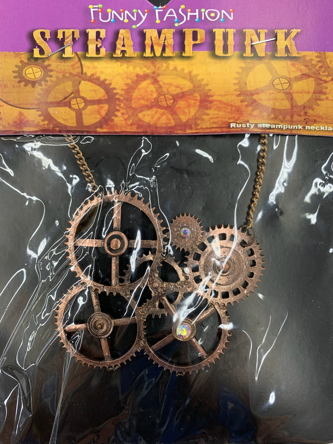 Add a touch of steampunk style to your wardrobe with this Rusty Steampunk Gear Necklace. Featuring a unique rusty gear design, this necklace is sure to catch attention and make a statement. Stand out from the crowd with this one-of-a-kind accessory.