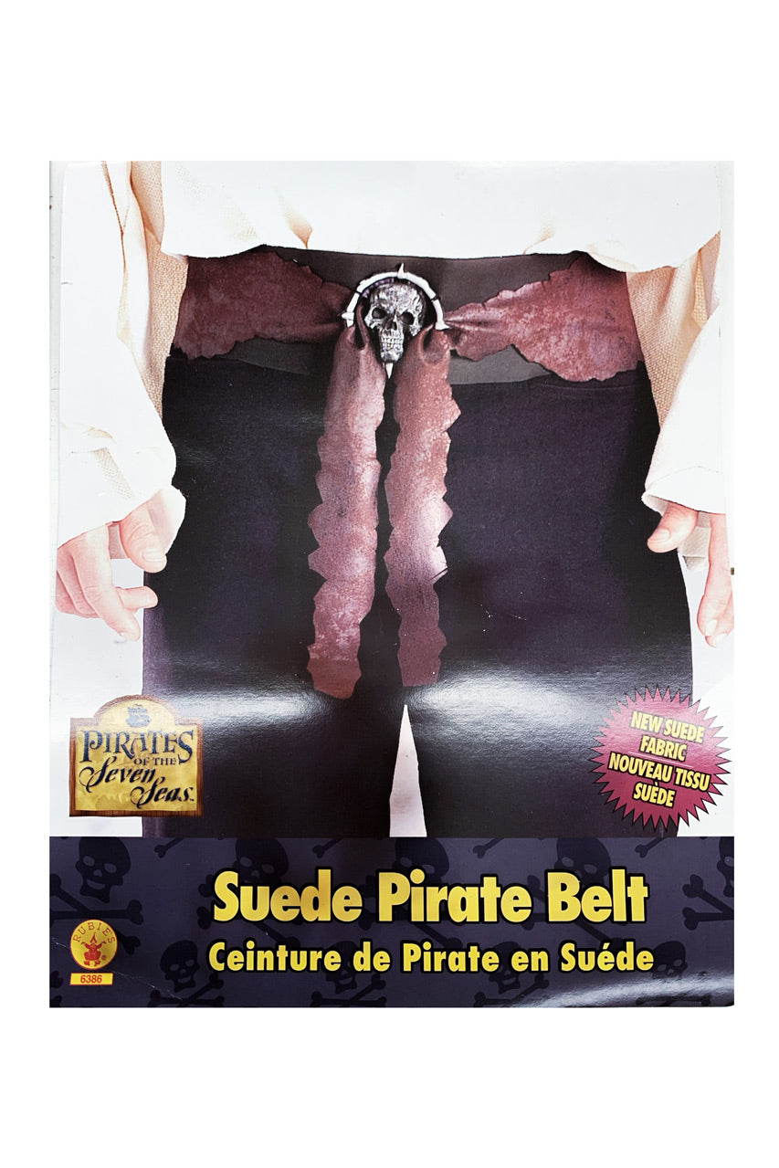 Complete your pirate costume look with this faux suede pirate belt featuring a skull buckle.