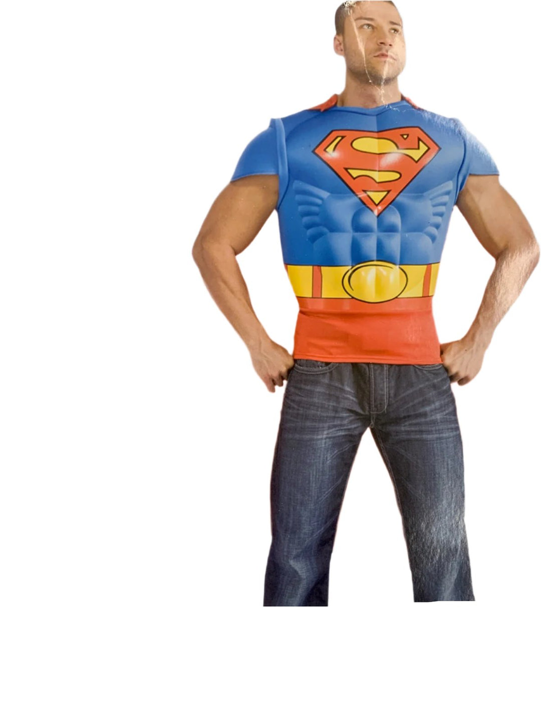 Unleash your inner superhero with Superman's muscle chest shirt and removable cape! Go from mild-mannered to mighty in seconds and save the day in style. (Sorry, phone booth not included.)