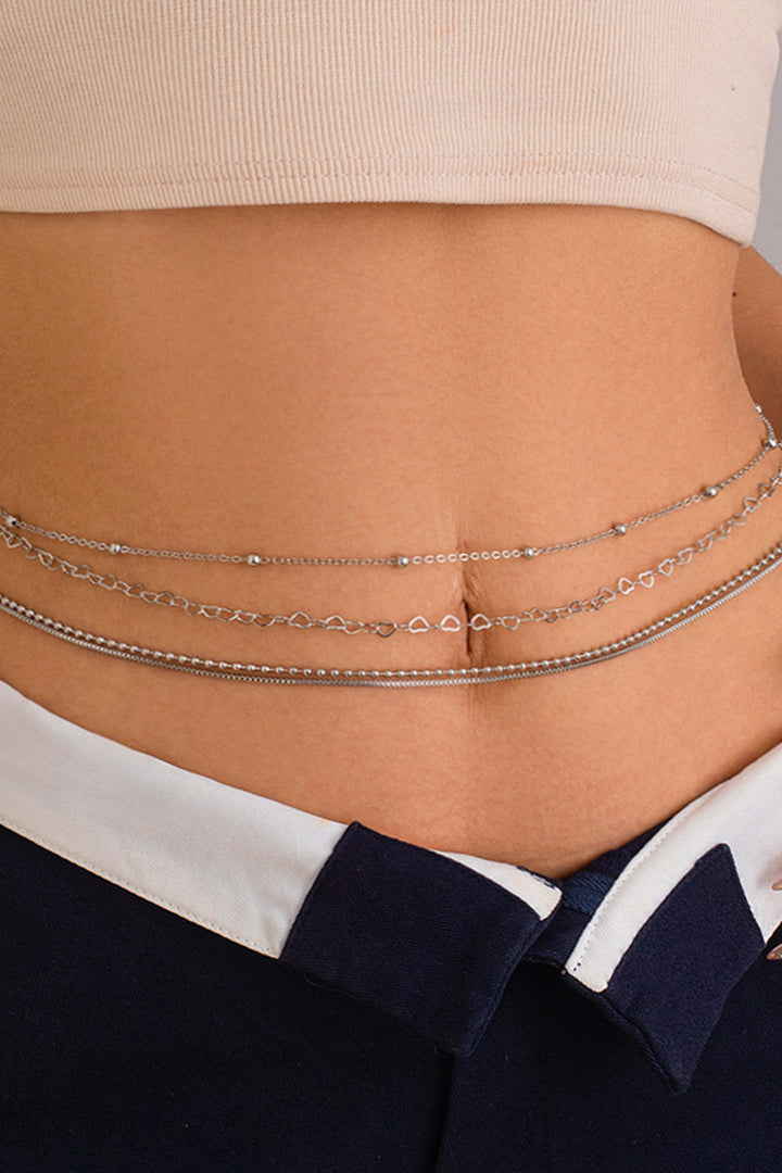 This simple belly chain features multiple thin chain straps.