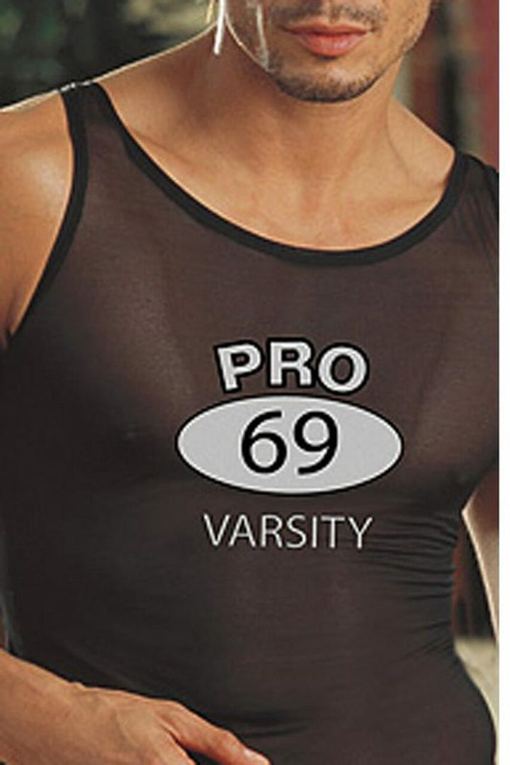 Looking for something sexy enough you can wear it all night long but still able to be warn out too? Well this sheer tank top is going to be just fine for that, with a varsity print on the front. Of course, it's only complete with the thong that goes along with it. So use this outfit for your special night and you'll be able to have a great time with that special someone while you're at it.