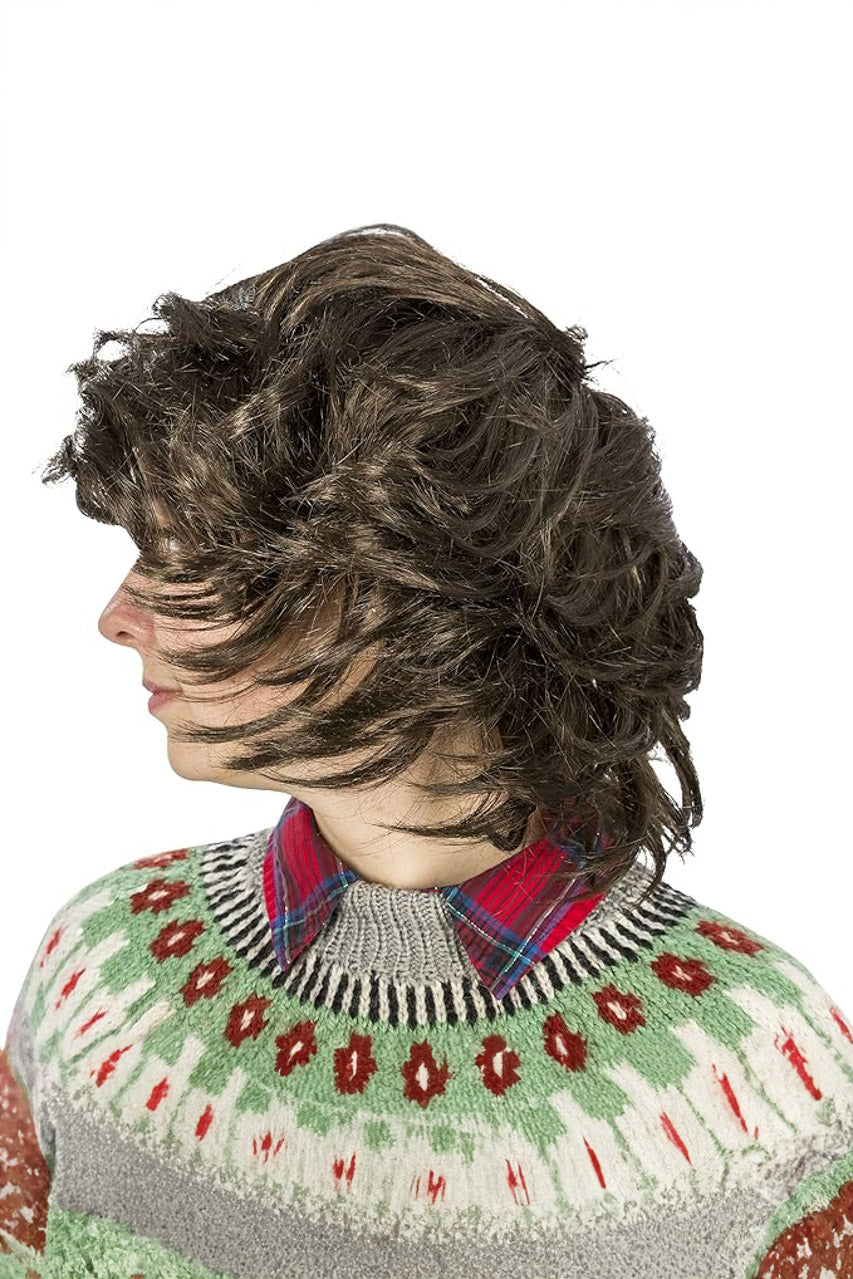 This dark brown wig has been carefully styled to give off a windswept effect.